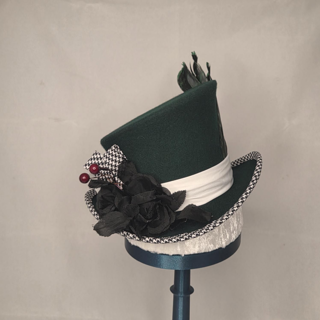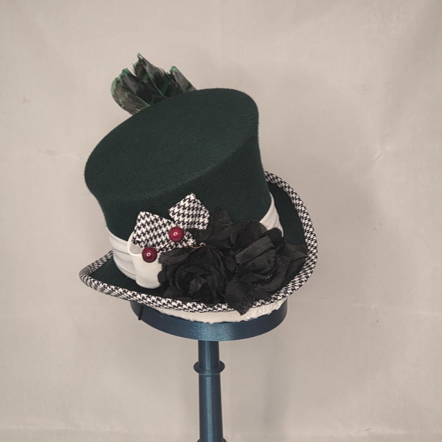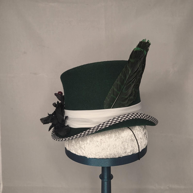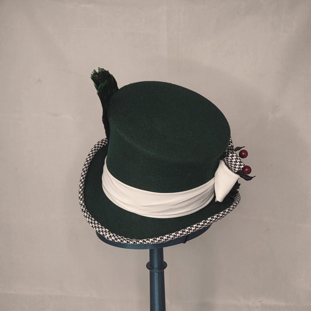 Midi Haut-de-forme vert en feutre de laine incliné.